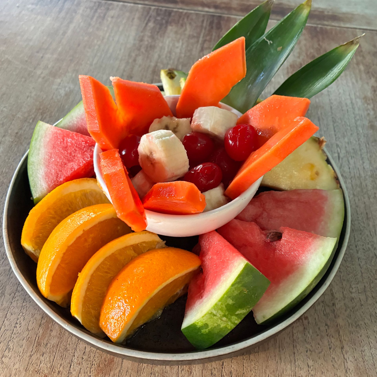Verrijk uw aankomst met een prachtig opgemaakte schotel met tropisch fruit: vers, kleurrijk en vol van de smaken van het eiland.